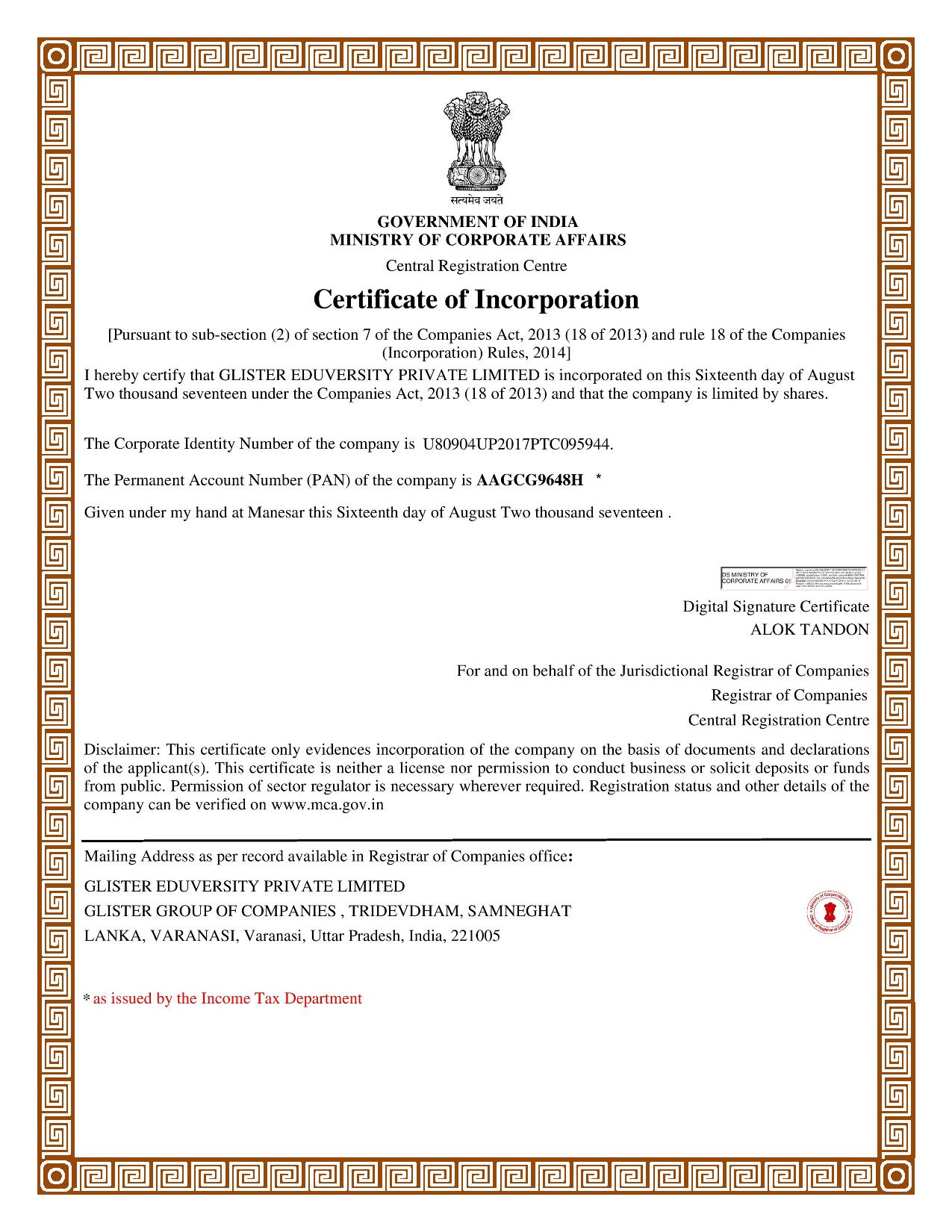 Certificate Of Incorporation